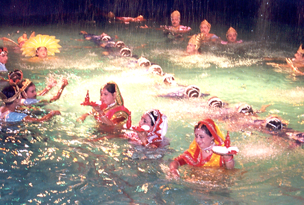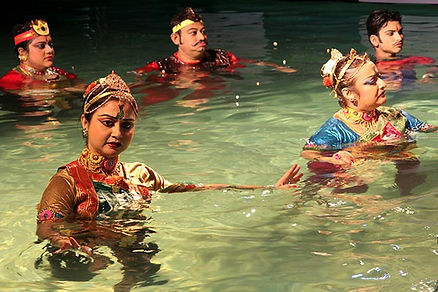 ILSS is probably best known for its Water Ballet. Unique in many ways it has been a huge draw in town. It was also the main fundraiser for the club. Galleries are erected on all sides of the Pool where the viewers are seated. Tagore Musical Dance Dramas were the eternal favourites - as well as various Mythological Stories and Adaptations of Children's Plays. Swimmers Swimmers play-acted in water under arc-lights, dressed in over the top costumes made out of coloured water-proof material, to the live/recorded audio.